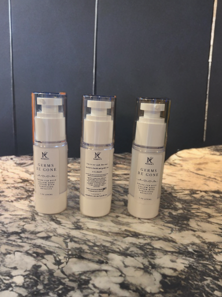 Ingredients: distilled water, 100% grass fed beef tallow, natural stearic acid, natural emulsifying wax, castor oil, jojoba oil, apricot oil, natural preservative, essential oils - tea tree, clove, rosemary, eucalyptus, peppermint, oregano