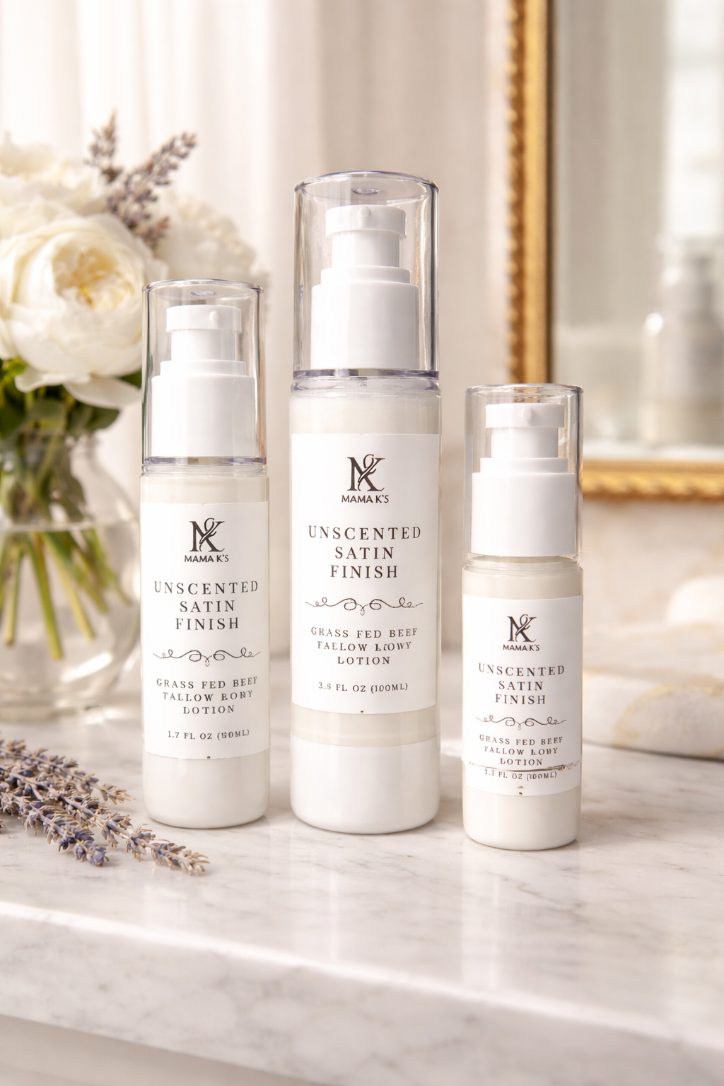 Ingredients: distilled water, 100% grass fed beef tallow, natural stearic acid, natural emulsifying wax, castor oil, jojoba oil, apricot oil, natural preservative, essential oils