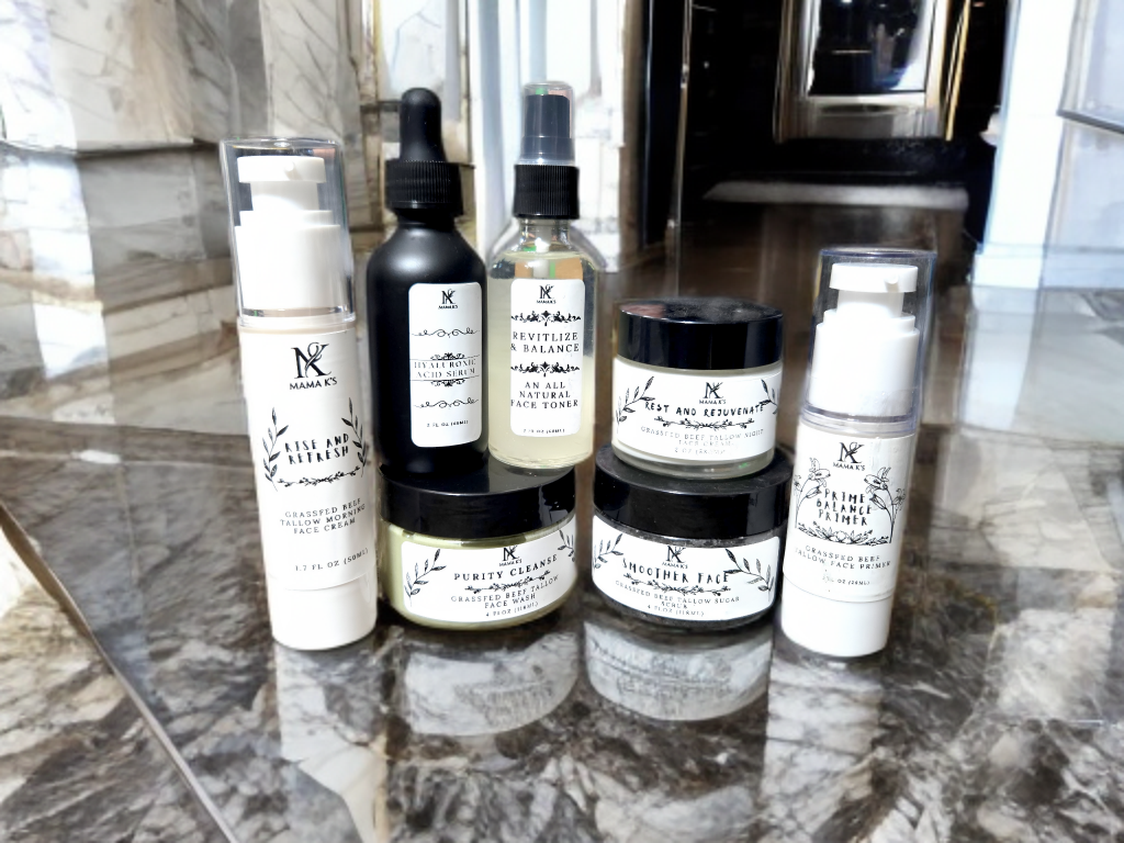A complete skincare system rooted in balance, nourishment, and renewal. This seven-step ritual is designed to restore skin’s natural rhythm using nutrient-rich tallow, hydrating actives, and botanical extracts. Ideal for those seeking simplicity without compromise.